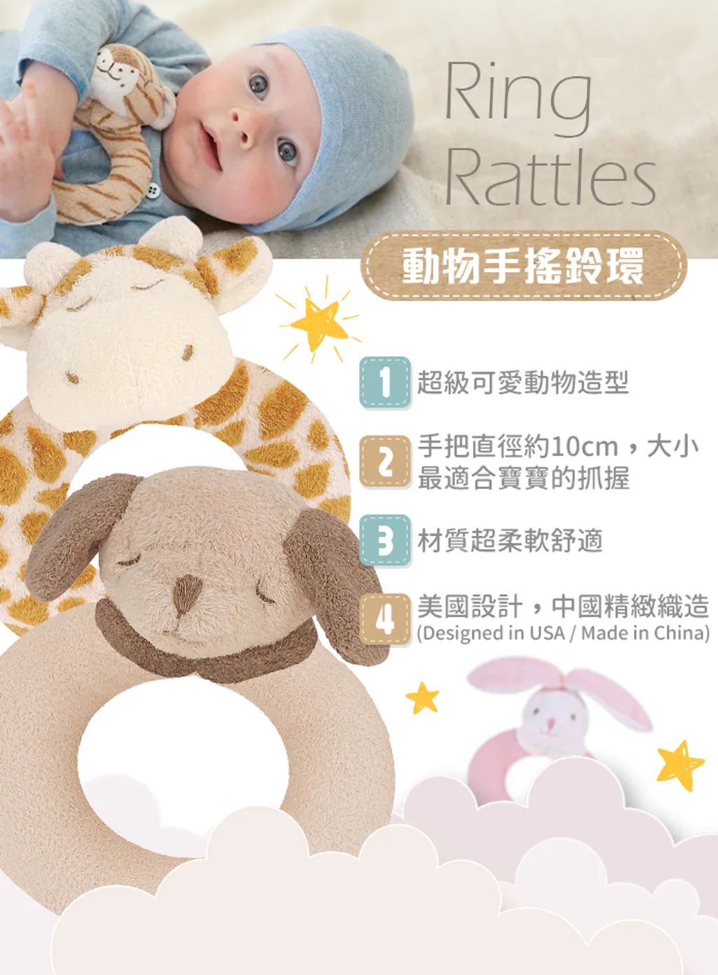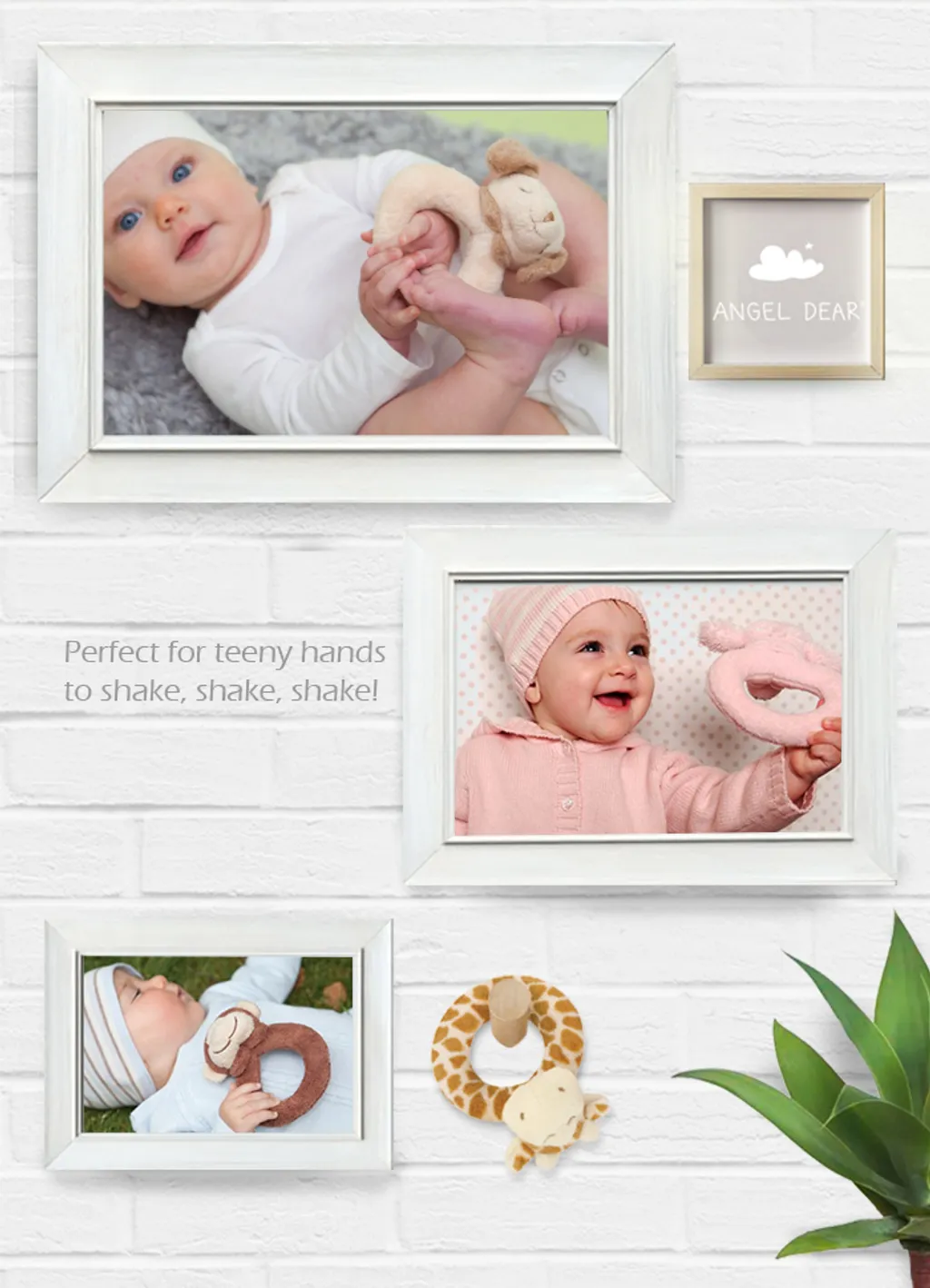 Baby’s favorite rattle pals are never out of reach. Pick from a large array of adorable characters in the Angel Dear kingdom. Great tool to help engage baby’s developing senses of touch and sound. Perfect for teeny hands to shake, shake, shake!