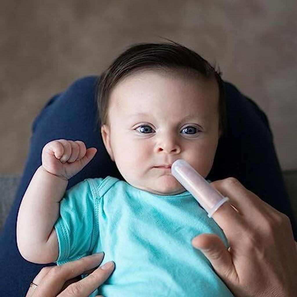 Introduce baby to healthy oral care habits with green sprouts First Toothbrush made from Silicone. Baby finger toothbrush for adult use on babies 0-6 months old.
