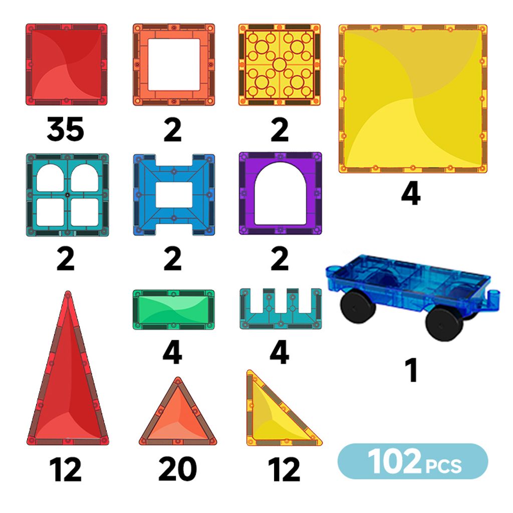 102 Pieces of Deep Color Windmill Magnetic Tiles (Deep Color)