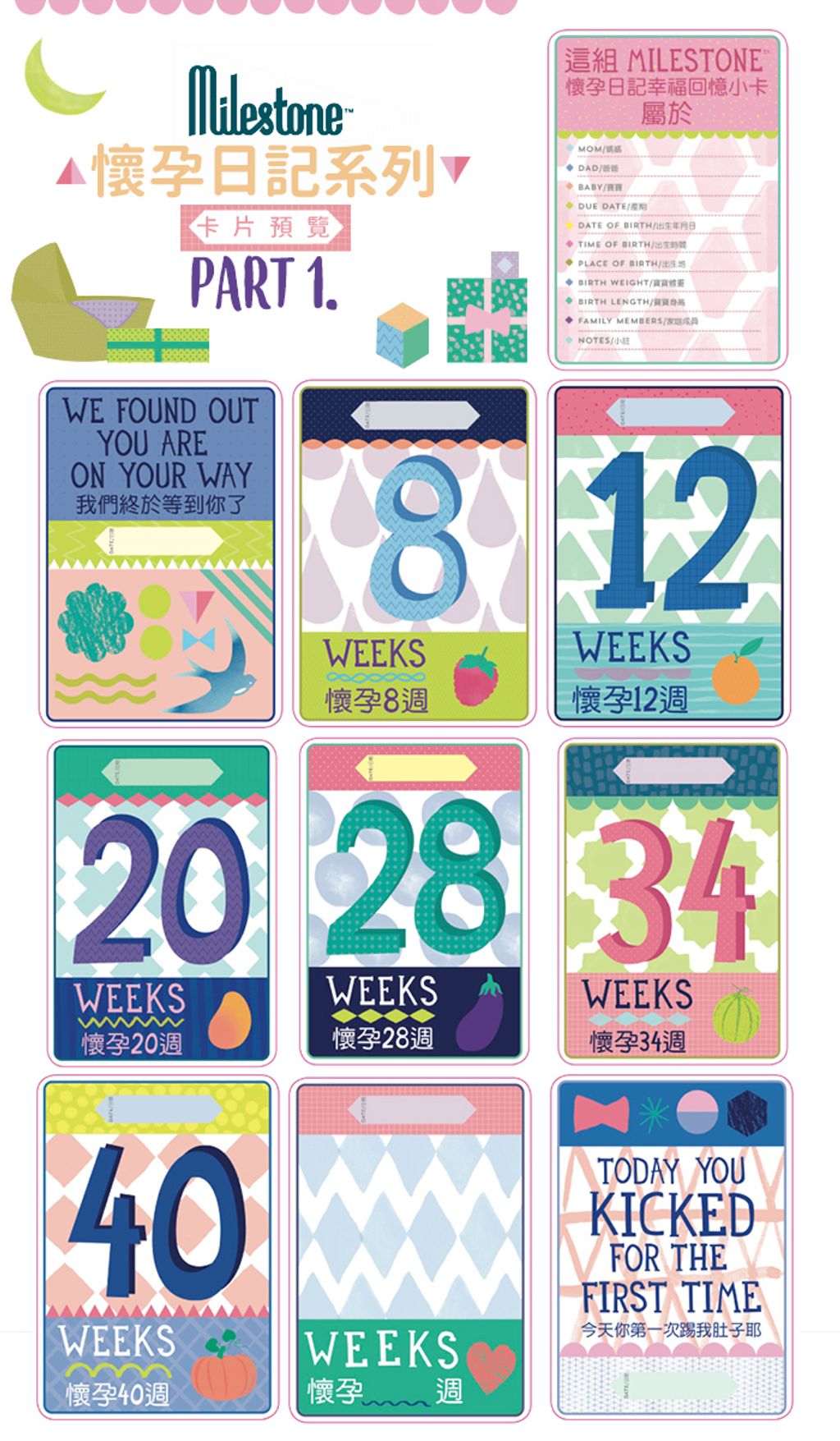 30 different cards are provided in the lovely gift box to ensure as many moments as possible are covered so you can record all special moments such as, first kick and your growing belly.