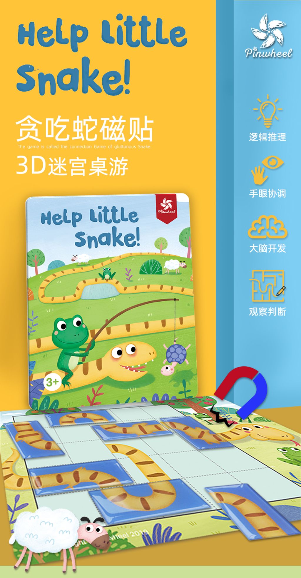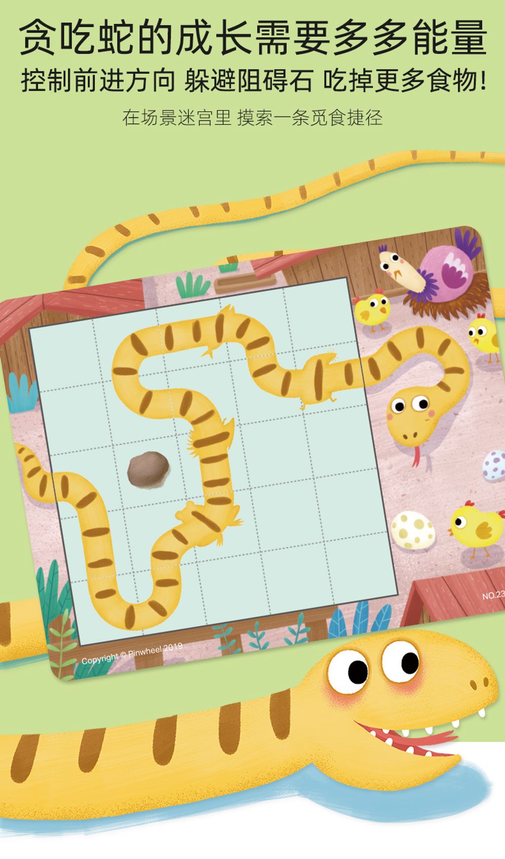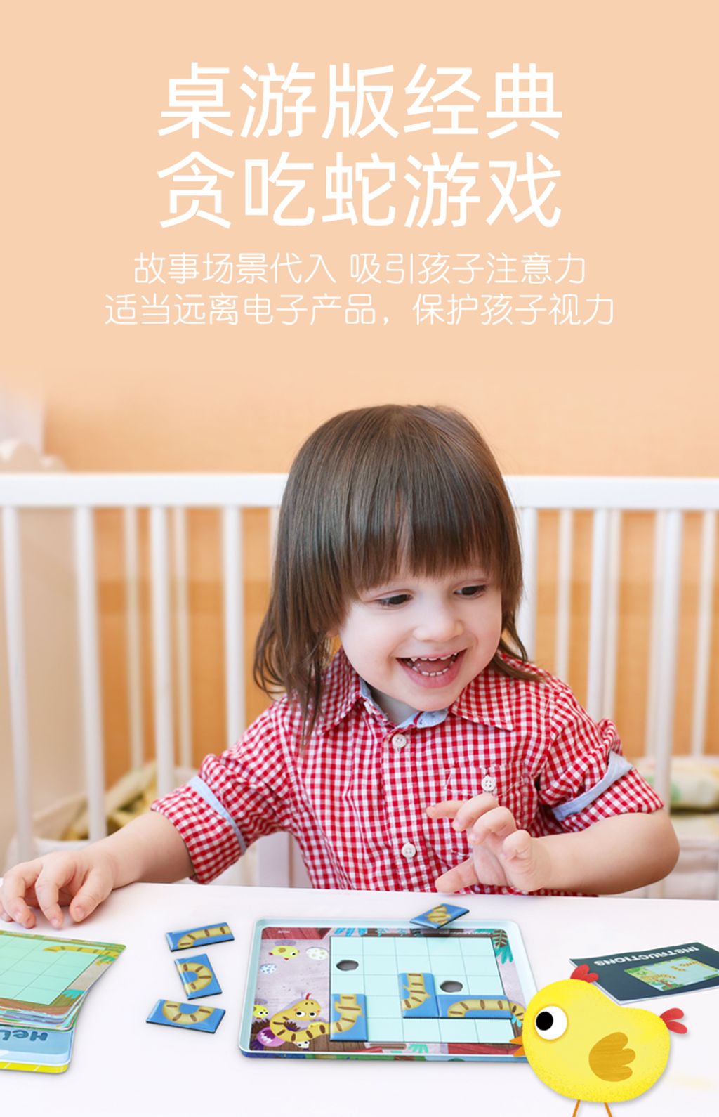 It has 15 game cards and 7 pieces of magnets. The game card gives the fixed position of snake-head and snake tail, and this is the known condition. This can be completed with careful observation. After the placement is done, if all the magnets are placed such that the snake-head and the snake tail can be connected, the answer is correct.